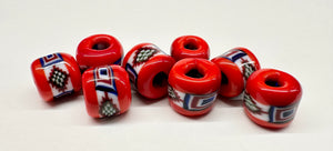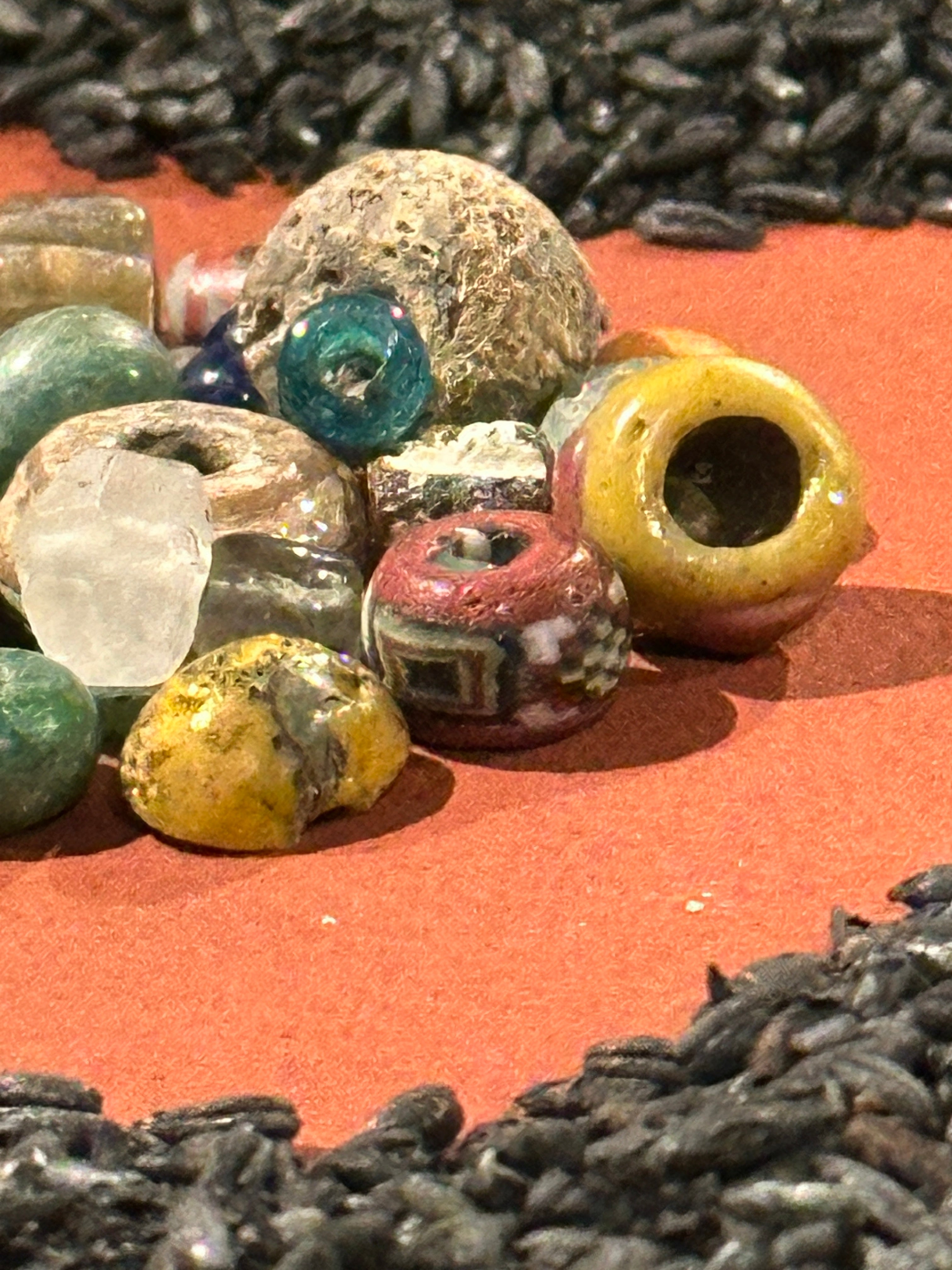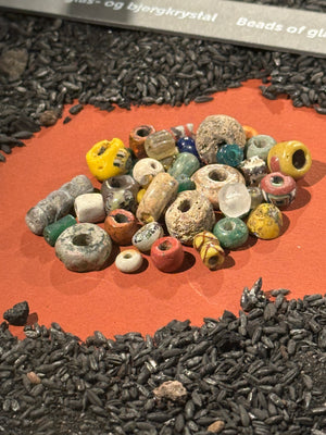 Mosaikperle vom Typ wie sie auch in Århus, Dänemark, in einem nieder gebrannten Haus aus dem 10. Jahrhundert gefunden wurde.